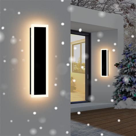 Xbuyee 2-Pack 18in Modern Outdoor Wall Light LED Long Wall Lighting Fixture IP65 Waterproof Wall Lamps, Dimmable 18W 1620LM Black Wall Sconce, 3000K/