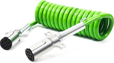 Cheemuii 7 Way Coiled Trailer Cord 15 ft Green ABS Electrical Power Coil Heavy Duty Cable Power Wire For Semi Trucks Tractors