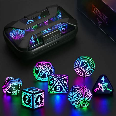 Light Up DND Dice Set, Wireless Rechargeable Glowing Dice with C