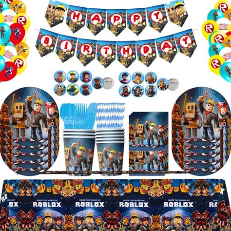 Roblox Birthday Party Decor Set Game Tableware Gift Bag Tablecloth Balloon Cake Topper Backdrop Baby