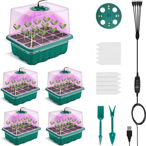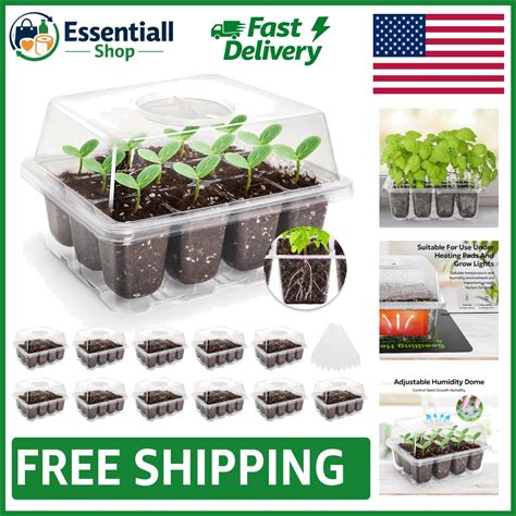 10 Pack Seed Starter Kit With 120 Total Cells Plant Germination Trays, Propagator With Humidity Dome