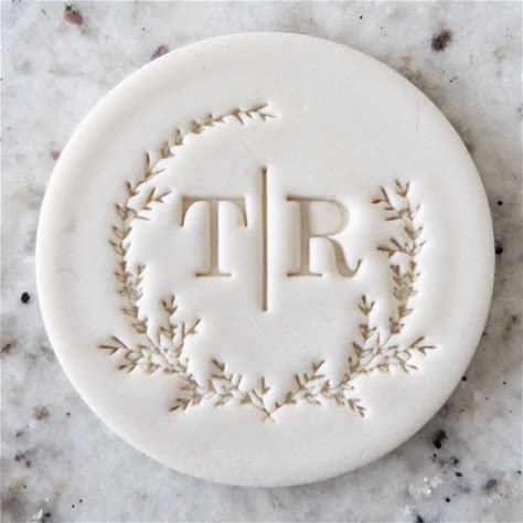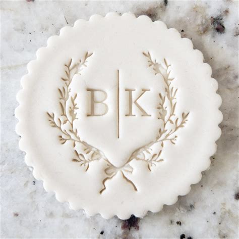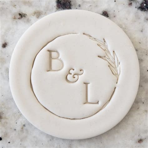 CUSTOM Wedding Initials With Wreath And Line Detail Cookie Biscuit Stamp Fondant Cake Decorating Icing Cupcakes Stencil Clay