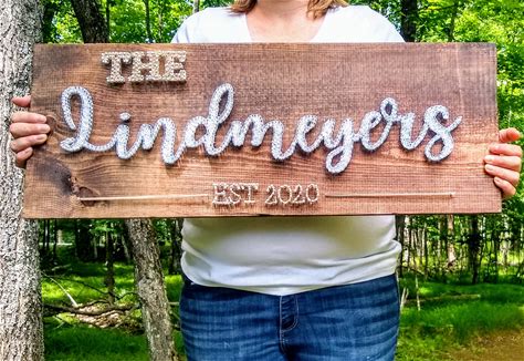 WOODEN STRING ART Sign Family Name Sign Bridal Shower Gift Personalized Rustic Home Decorgift For Her Gift For Him Anniversary Gift Cotton