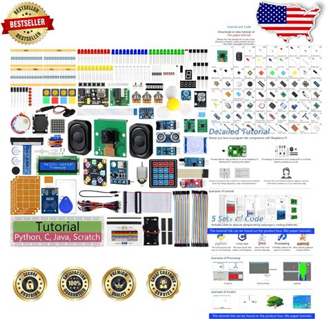 Kit For 1 2 W, 767-Page Tutorial, 220 Items, 119 Projects, Python C Java Code