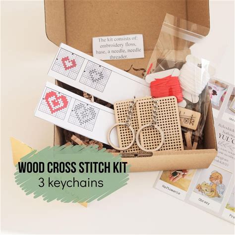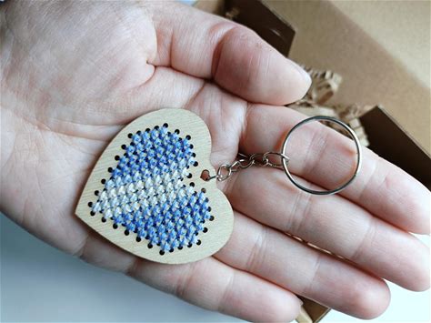 DIY Keychain Embroidered Kit For Beginners - Easy Counted Cross Stitch Wood Keychain KIT - DIY Valentine's Day Craft Kit Gift