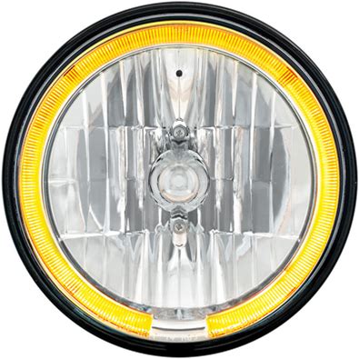 United Pacific 31496 Projection Headlight Rh/Lh, 7" Round, Chrome Housing, High/Low Beam, With Dual Function Led Halo Ring (Amber/White)