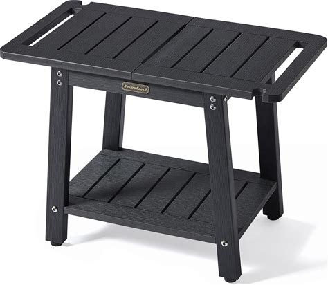 HDPS Shower Benches, Black Shower Stool For Shaving Legs With Shelf, Waterproof Bathroom Chair Seat, Weather Resistant/Non-Slip/Handles/Indoor Or Outdoor Use(Black)
