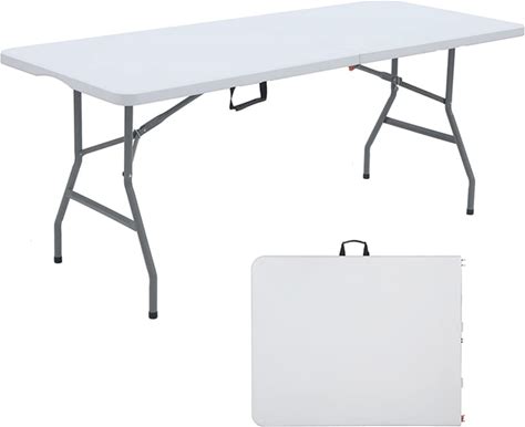 Byliable Folding Table 6ft Heavy Duty HDPE White Plastic Portable Table Fold-In-Half Utility Dining Foldable With Carrying Handle Indoor Outdoor For
